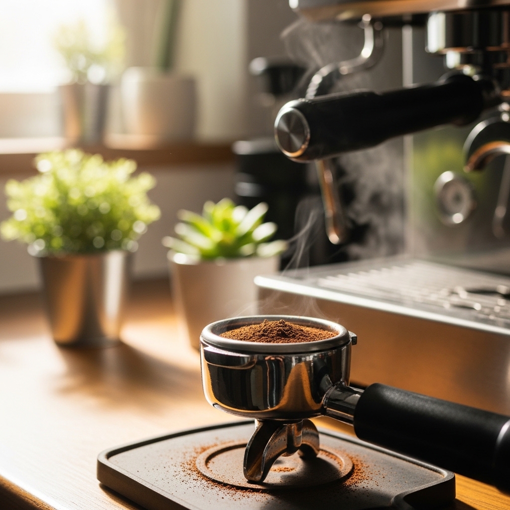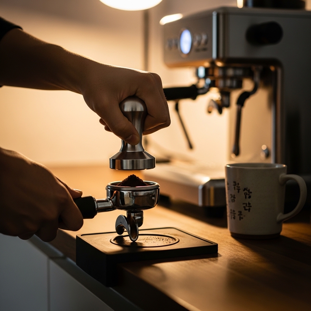 - 원두 계량 및 분쇄: 1샷 기준 7~9g 원두, 분쇄도는 에스프레소용 매우 곱게